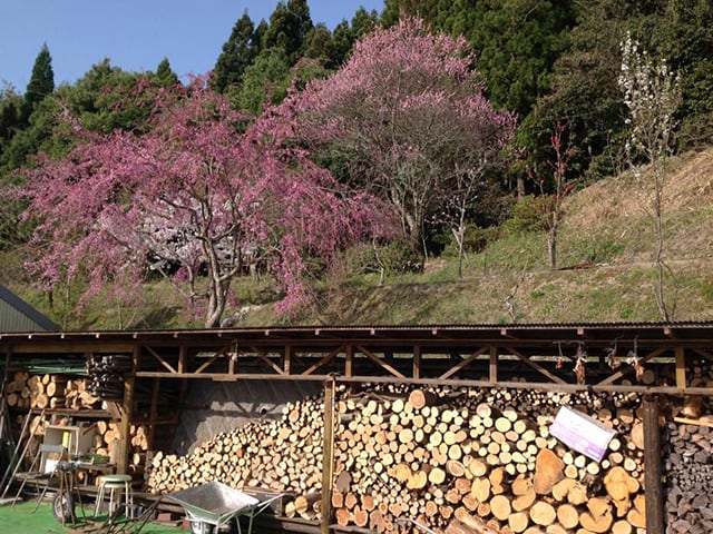 金剛・葛城山の麓を走る県道30号線。「山麓線」の愛称で親しまれているこの道から、増地区の集落に入ると、見えてくる「さんろく自然塾うめだファーム」。御所市初の民泊第1号です。敷地内にはカフェも併設していて、登山や歴史ファンに人気のお店です。