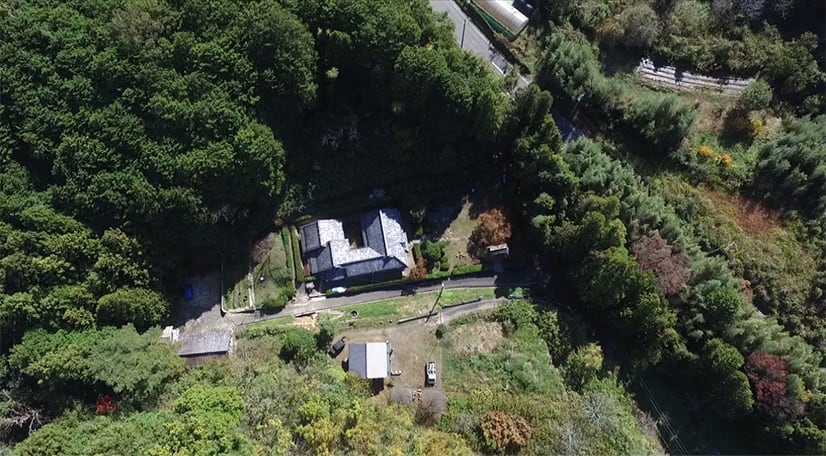国道24号線「かもきみの湯」の近くの交差点を少し入って細い道に入った瞬間、木々に囲まれた大きな一軒家が見えてくる。