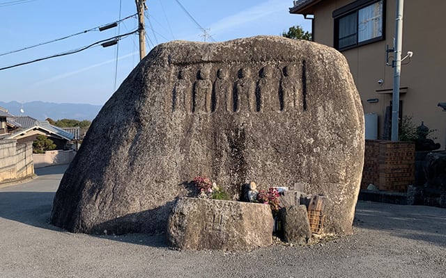 古代から中世にかけて、川の出水により、度々災害が発生し、伝承によれば、六地蔵が彫られた大きな石も、室町時代の土石流で、いまの場所に流れ着いたと言われています。極楽浄土を願った村人たち信仰の証でもあります。